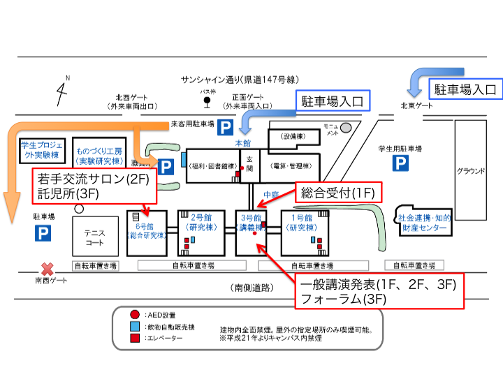 9.受付:総合受付所(3号館1階正面入口)、事前申し込み不要。当日ご参加いただけます。