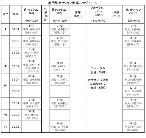 - 第VI部門 建設事業計画,設計技術,積算・契約・労務・調達,施工技術,環境影響対応技術,維持・補修・保全技術,建設マネジメントなど