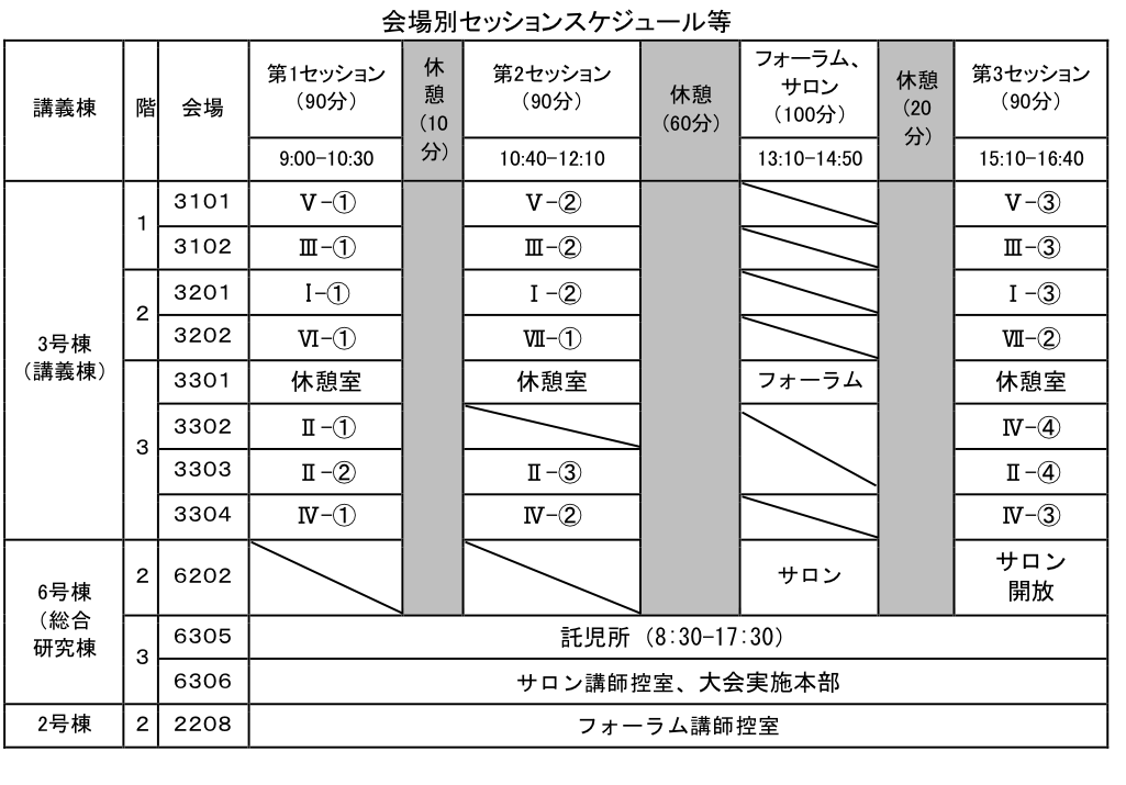 講演者は該当セッション開始時刻の10分前に会場に集合し、座長による点呼および講演方法に関する説明を受けて下さい。